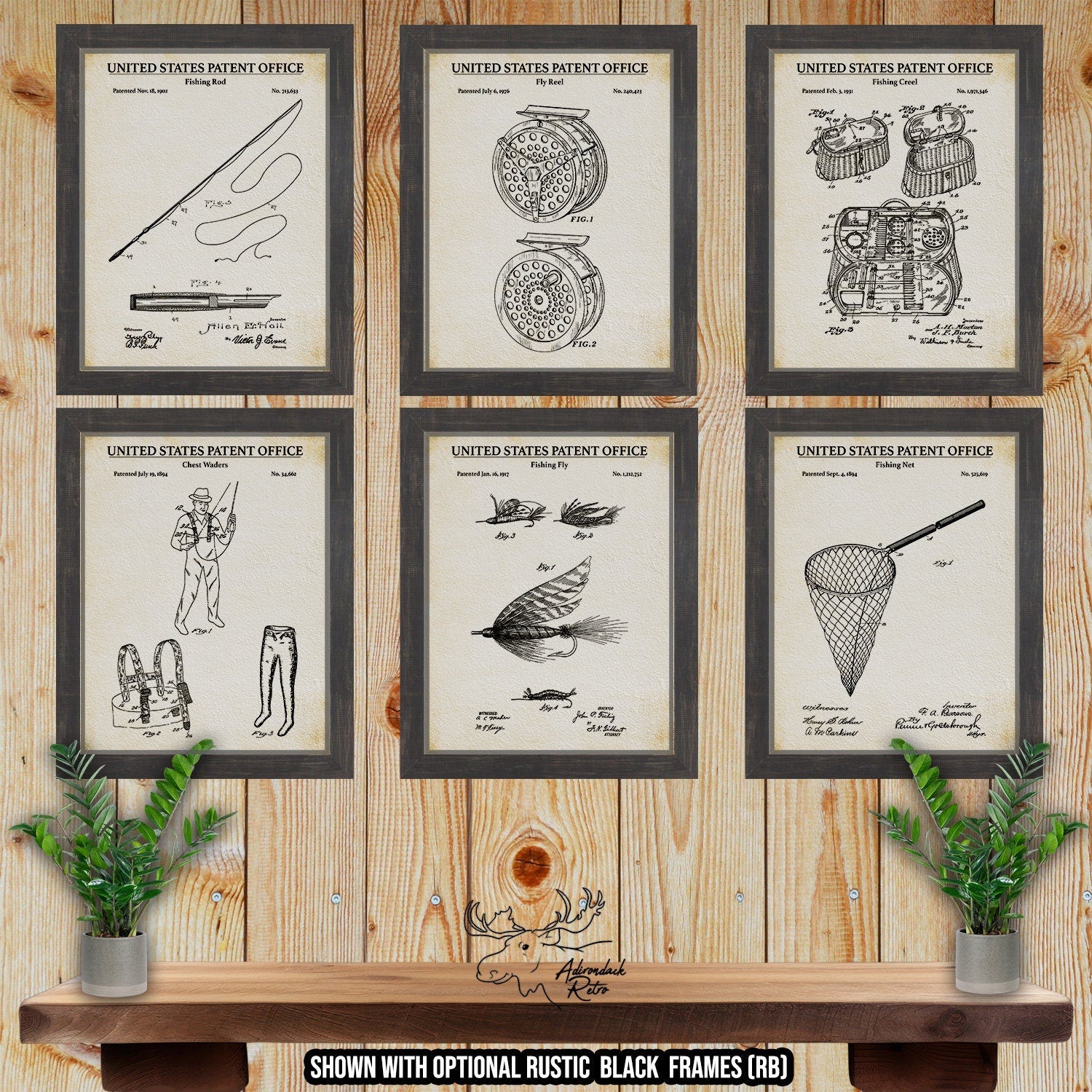 These Adirondack Retro Premium Vintage Fishing Patent Prints are beautiful renditions of some of the most popular fishing inventions ever created. Anglers, Fisherman, Outdoorsman and Sportsman alike will find a plethora of Fishing Wall Art, including Patent Drawings of Fishing Poles, Fishing Reels, Fishing Lures, Fishing Tackle and more! We have professionally restored and enhanced these patent illustrations from the United States Patent Office and have added a bit our "Adirondack Retro Flair" to them, making them truly unique and one-of-a-kind nostalgic prints. Whether you purchase them for yourself to enjoy or you give them as a gift, they are sure to be attention grabbers and conversation pieces for many years to come. They are available on Museum Quality Fine Art Paper in various sizes & colors, with the option to include a High Quality Wooden Frame in various styles and colors with your purchase.